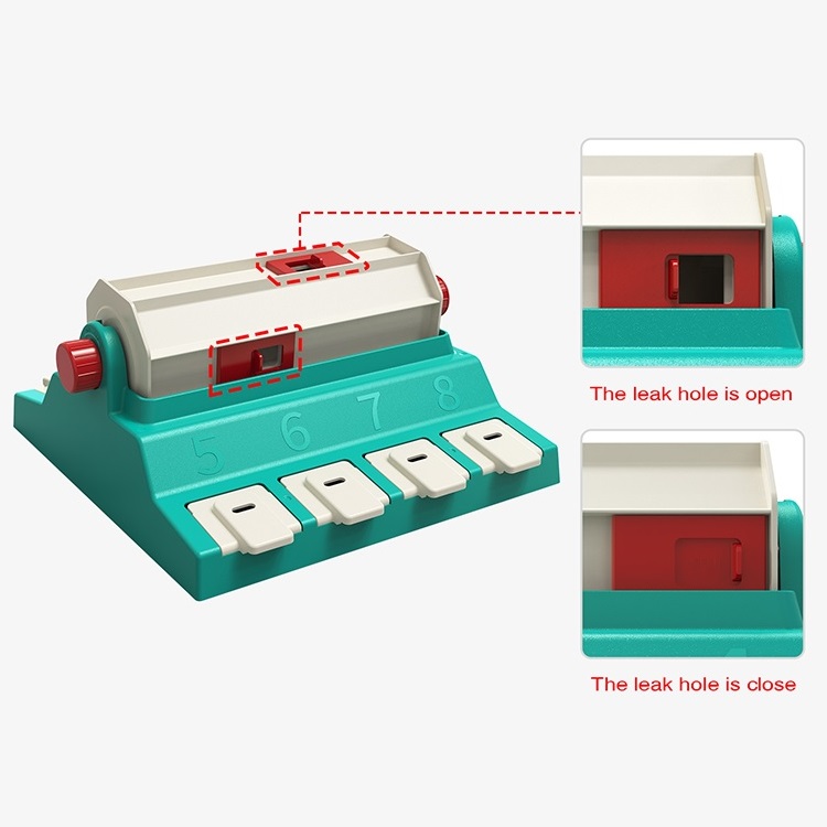 Each food dispensing hole has a regulator. We can use it to close one or two food dispensing holes to increase the difficulty for dogs to get food. We can also control the speed of the leakage by adjusting the size of the food dispensing hole. This design can increase the difficulty of pet's intelligence training. After a long period of training like this, the dog will become smarter and more stable in character and mood;