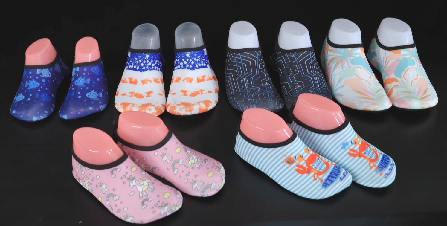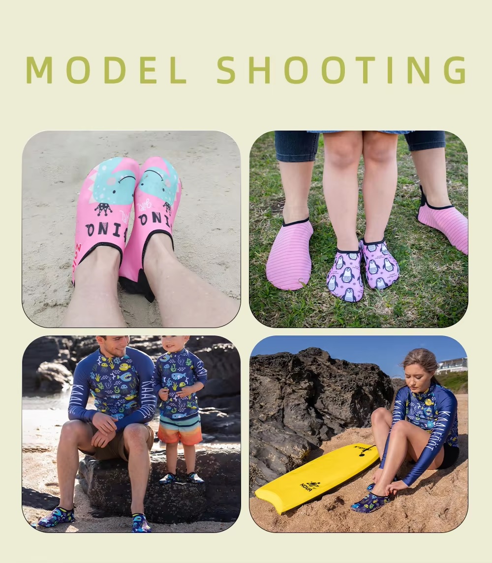 The soles of children's beach shoes use selected natural rubber/high-quality EVA; deep and dense anti-slip patterns (for grip on wet sand/rocks); thick soles (≥5mm) for heat insulation and protection against sharp objects; models with drainage holes/channels allow for quick water drainage after wading;