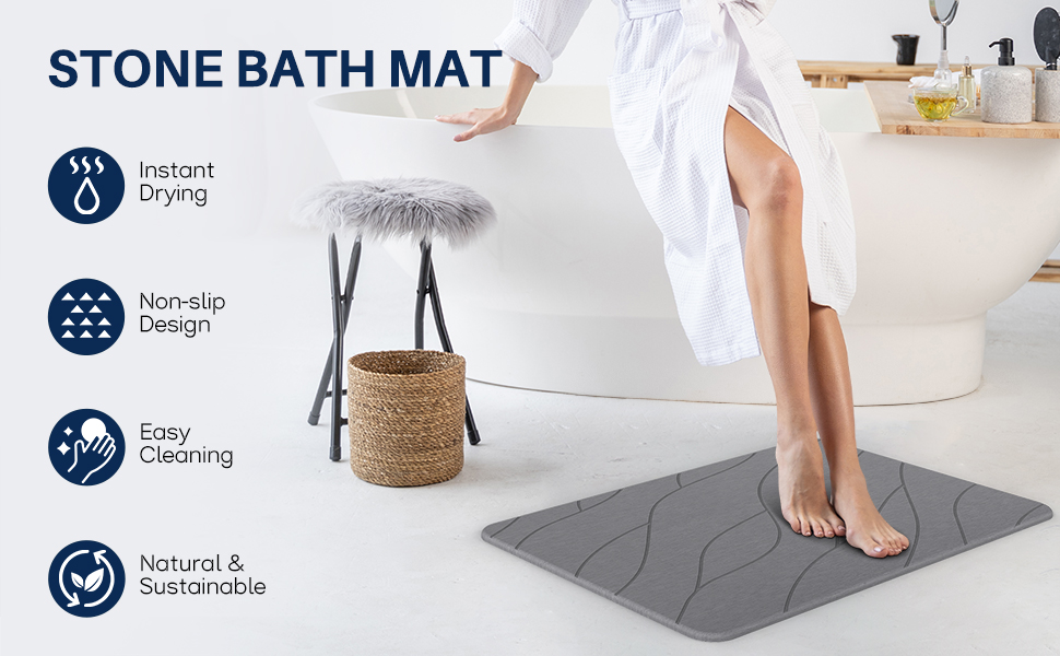 Natural porous structure of diatomaceous earth itself makes it super absorbent, when you contact stone bath mats for bathroom, the water will immediately disperse, absorb and evaporate,making your feet feeling dry immediately. Our Quick drying bathroom stone mats won't allow water to stagnate or accumulate in wet spots, so you can keep your bathroom dry and hygienic at all times.