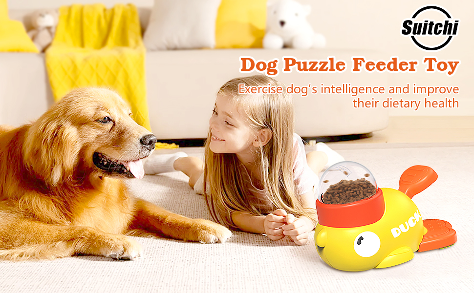 The cute duck shape is made of food-grade PP material, so that dogs can be healthier and love this interactive dog feeder toy.