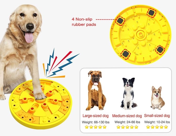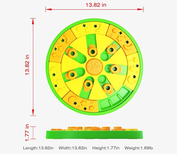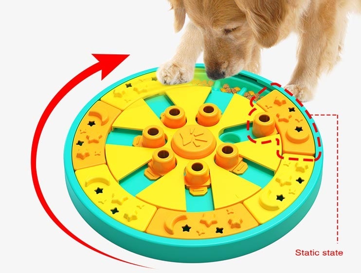Dogs Puzzle Toy Food Treat Feeder,This is a puzzle toy specially designed for developing dogs intelligence and promoting their brain development; it looks just like a roulette.