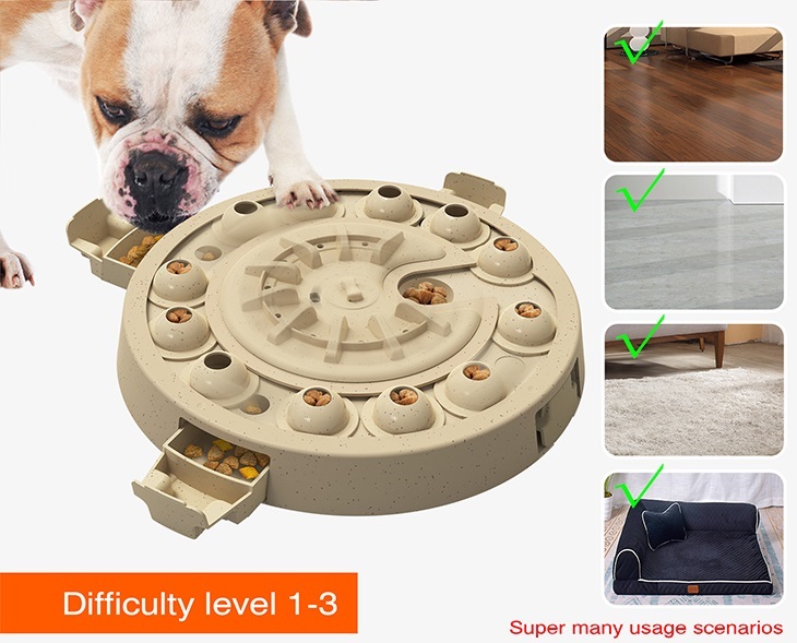 This puzzle toy can promote pet brain power and intelligence, and integrates the gameplay of 3 difficulty levels into one toy.it is also a training toy that can keep your dog`s mood and temperament more stable.it is suitable for dogs that have not been intellectually trained or primarily trained.