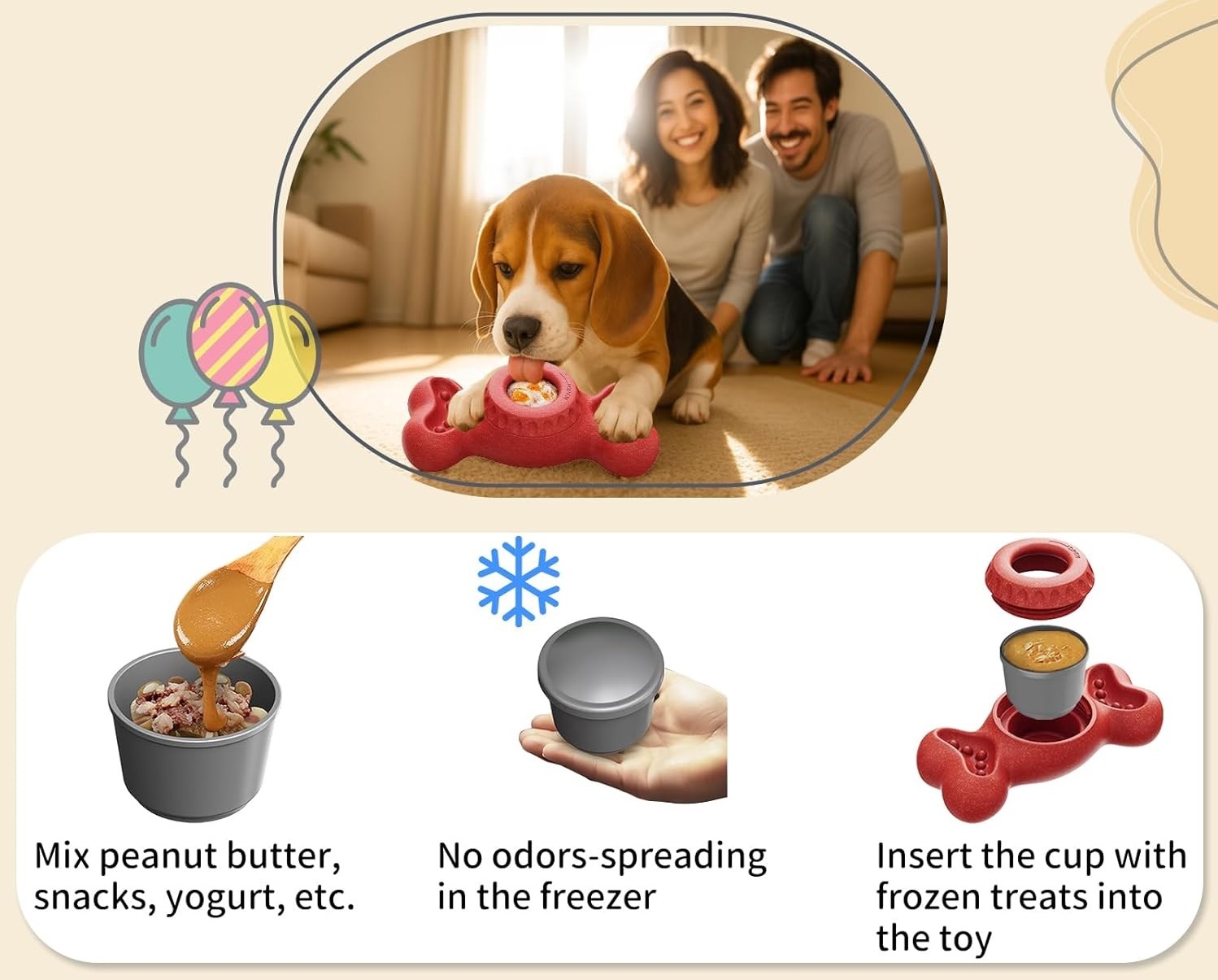 Shaped like a bone to appeal to your dog's instincts, this toy feels natural and comfortable for them to lick and chew. It features a wide, sturdy base so your pup can hold it steady with their paws while enjoying frozen treats or peanut butter spread in the grooves. This instinct-friendly design provides a stable, enjoyable play experience that satisfies your dog's natural behaviors, making treat time even more rewarding;
