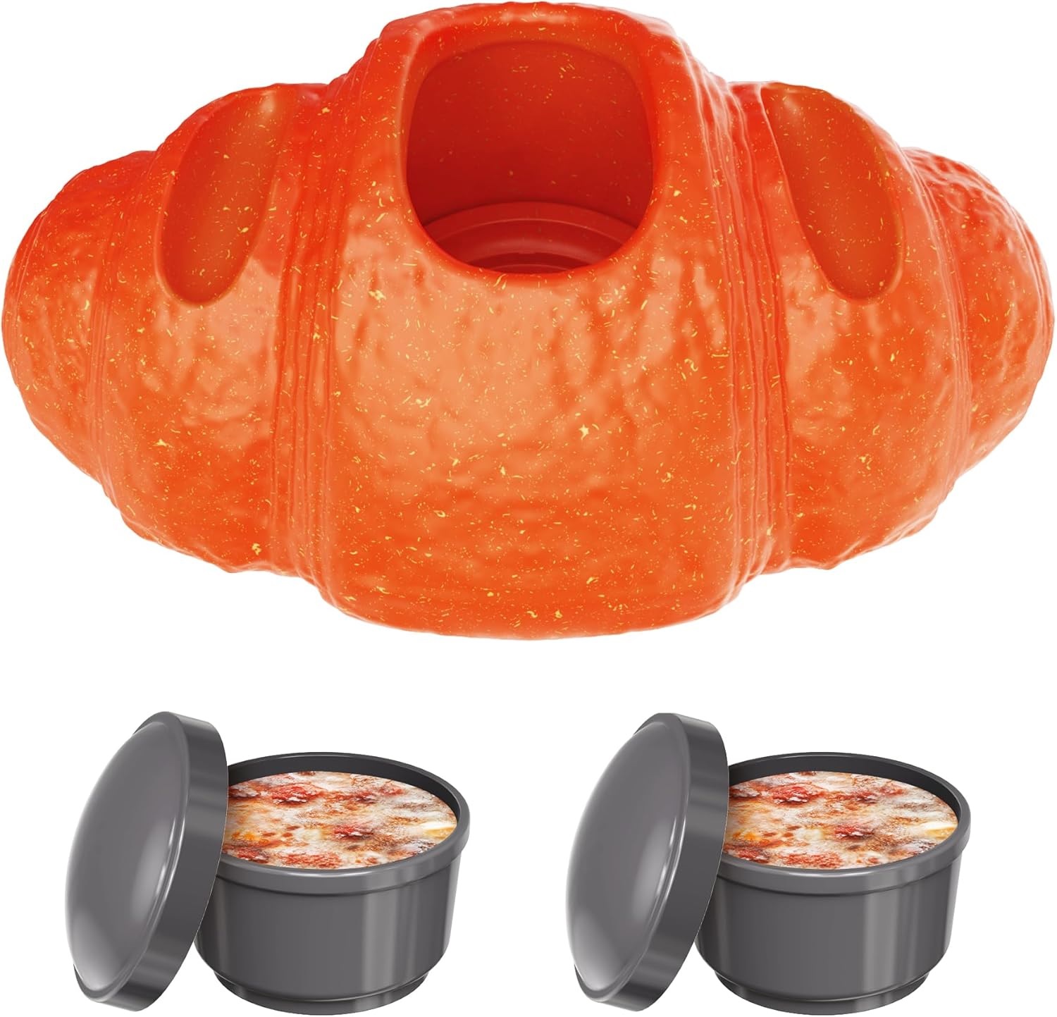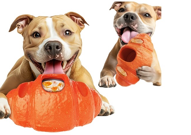 This interactive toy is thoughtfully designed to keep your dog excited and engaged. Freeze, Stuff & Play This croissant-shaped dog toy features two separate treat compartments for more creative feeding options. Fill them with yogurt, pumpkin, or soft meat paste, freeze, and give your dog a refreshing licking experience. Its ergonomic curves allow dogs to hold and chew comfortably, keeping them engaged indoors or outdoorsThe toy also features textured grooves on both ends, perfect for spreading peanut butter or other yummy treats and turning playtime into a flavorful delight. Built strong for chewing fun, this single toy offers endless enjoyment and variety for your furry friend;