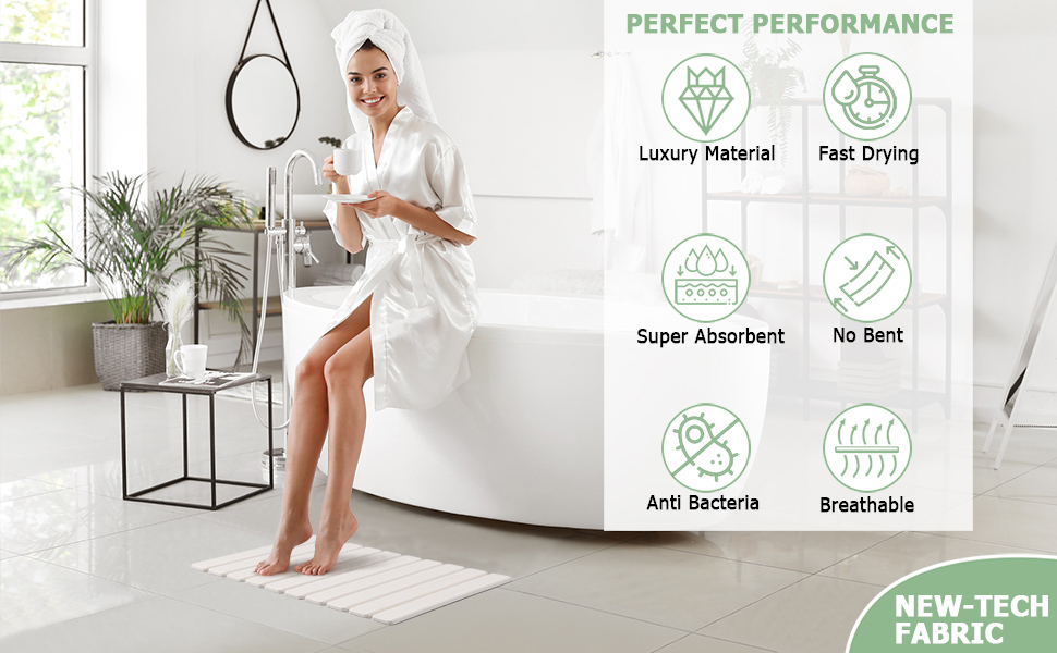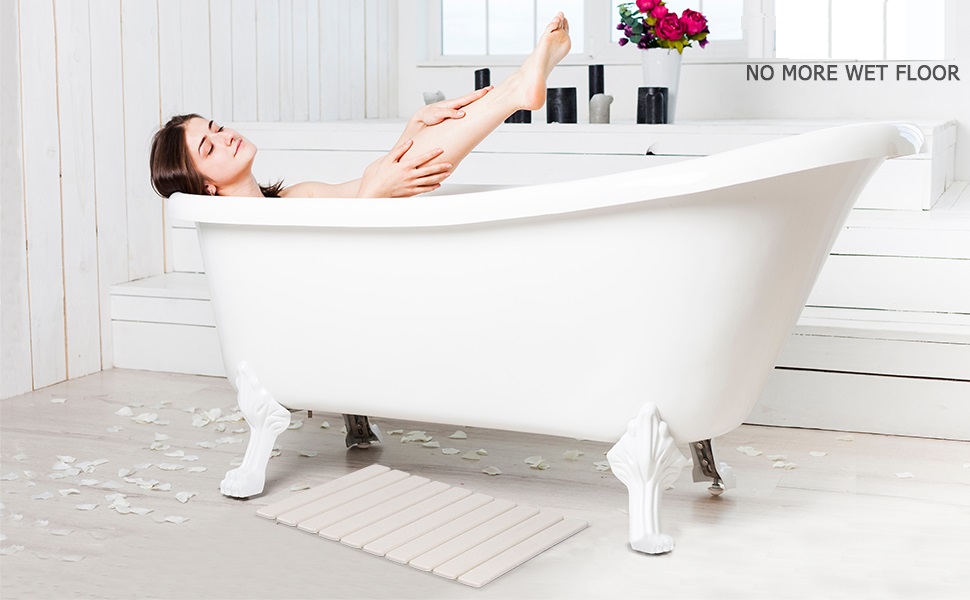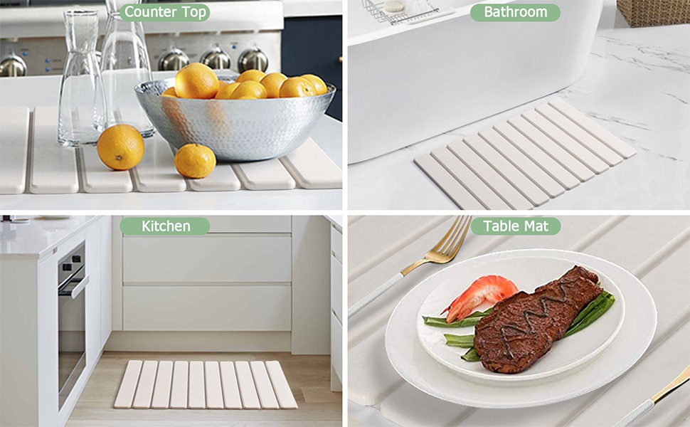 As a natural desiccant, bath mat stone absorbing miraculously soak up water. Millions of micropores in the instant dry bath mat's surface vanish the watermarks in a matter of seconds and keep your feet and floor dry and sterile Featuring an anti-skid rubber backing, drying stone bath mat increases friction and offer better grip on wet & dry surfaces, so seniors and children need not worry about slipping.