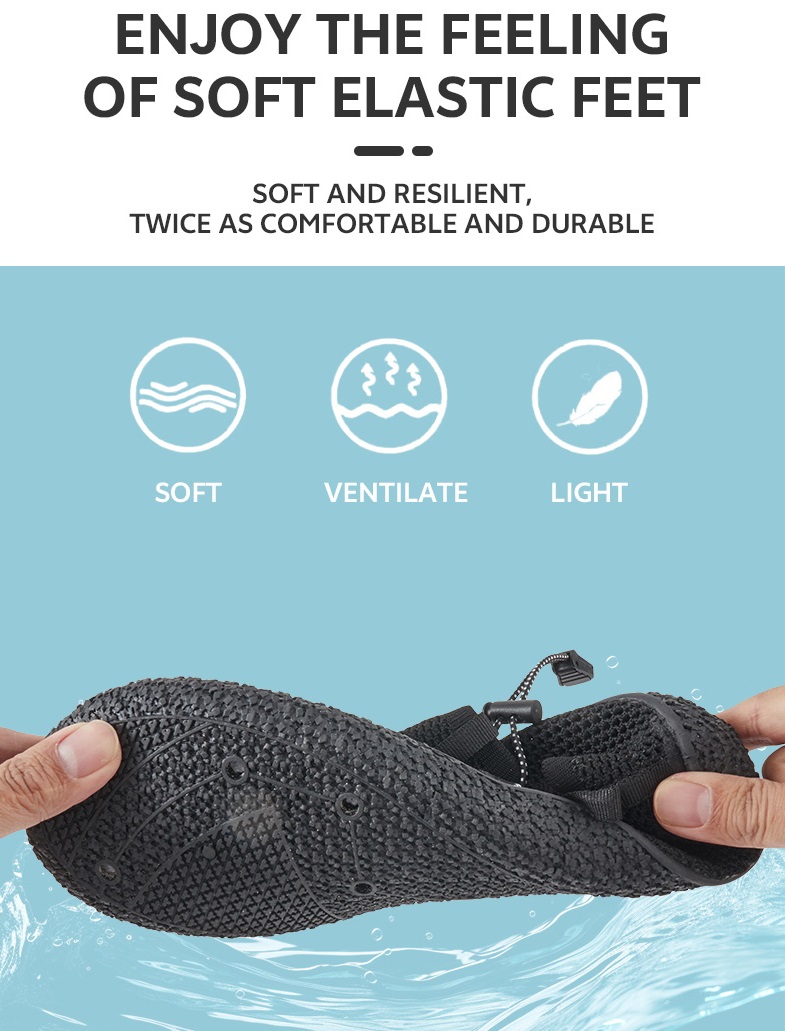 1. Beach Strolling / Shell Collecting: The ultra-thin, flexible sole protects against shells, pebbles, and sharp rocks, preventing foot injuries; the mesh upper and elastic opening prevent sand from entering the shoe, eliminating the need to repeatedly remove shoes to empty out sand, making beach activities and sand walking effortless.