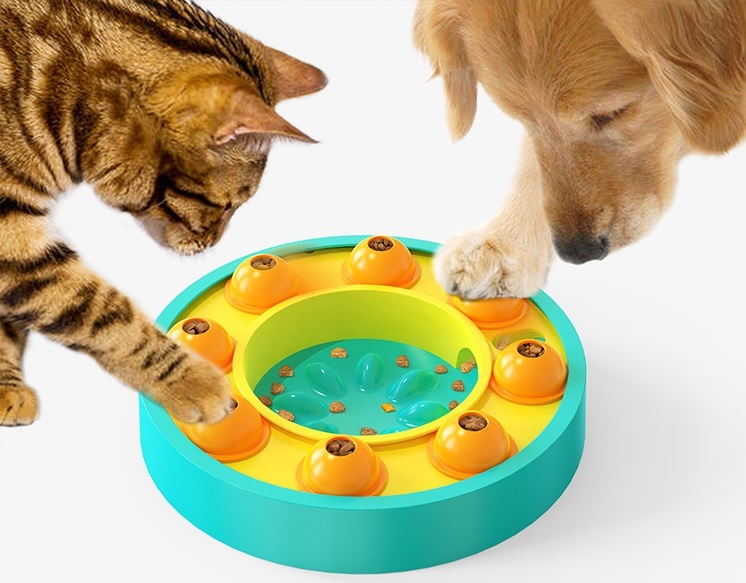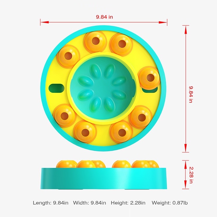 We have this wheel food dispenser, we can use it as a food dispenser、fortune wheel、spinning wheel、puzzle game and others, the toy is designed for different sizes of doggies, many doggies can enjoy it at the same time;