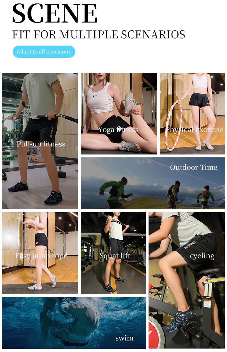 Kayaking/Paddleboarding/SUP: Allows for direct stepping onto slippery docks and shallows without changing shoes, the quick-drying material dries quickly after coming ashore, and the lightweight design does not add to the burden of exercise;
