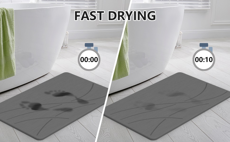Made of diatomaceous earth, the stone mat has special structural qualities, full of countless tiny pores, with strong water absorption, it only takes 10S to absorb and evaporate water.bath stone comes with a silicone non slip mat which could provide strong grips. Place it underneath the diatomite mat to give it a good grip on the floor and keep the mat in its place