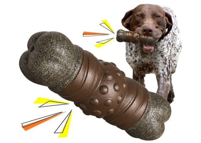 When chewed by the dog, the toy makes a squeaky sound, which attracts the dog to play with it. The sound stimulates the dog's body and brain to move together, not only soothing their emotions and stimulating their spirits, making the dog happier, but also enhancing their intelligence. The squeaker device of this toy is designed with a hidden and built-in design, ensuring that the dog cannot directly access the squeaker while chewing and playing with the toy. It is safer and more durable, preventing any damage from the dog's chewing;