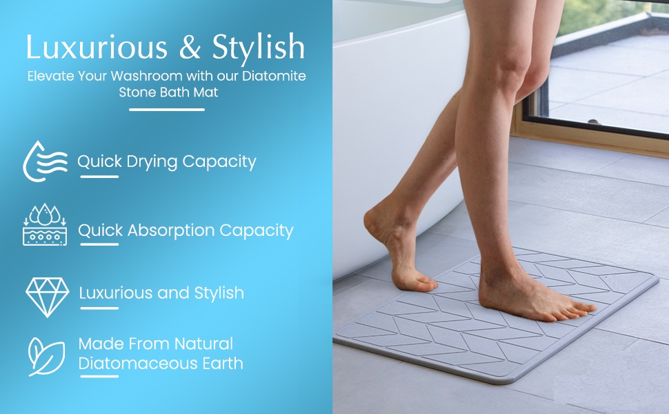 Made using 100% natural diatomaceous earth powder, Comes with sandpaper to maintain its absorbency for a longer time,These stone bath mats for bathroom are not only a great alternative to ordinary bathroom rugs and mats, but are also reliable for long-term use.