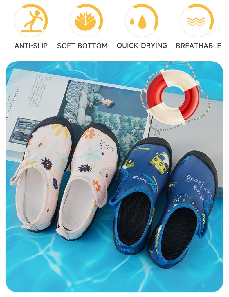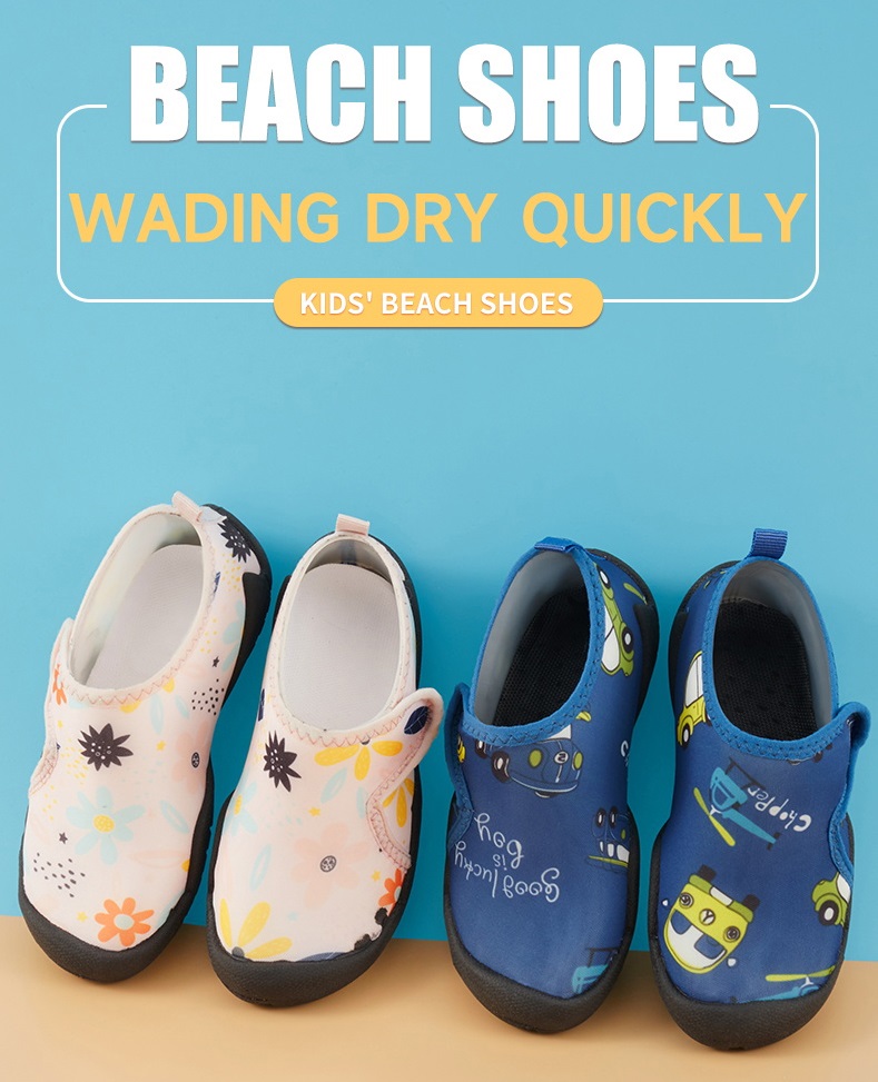 Children's water shoes are footwear designed specifically for children and adapted to wading/wet environments, focusing on quick-drying and water drainage + slip resistance on wet surfaces + puncture and impact protection, while also being lightweight and easy to put on and take off, protecting children's feet.