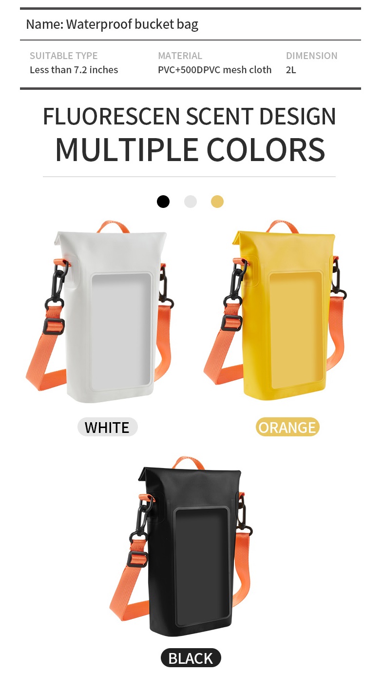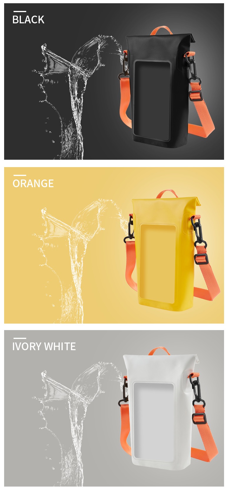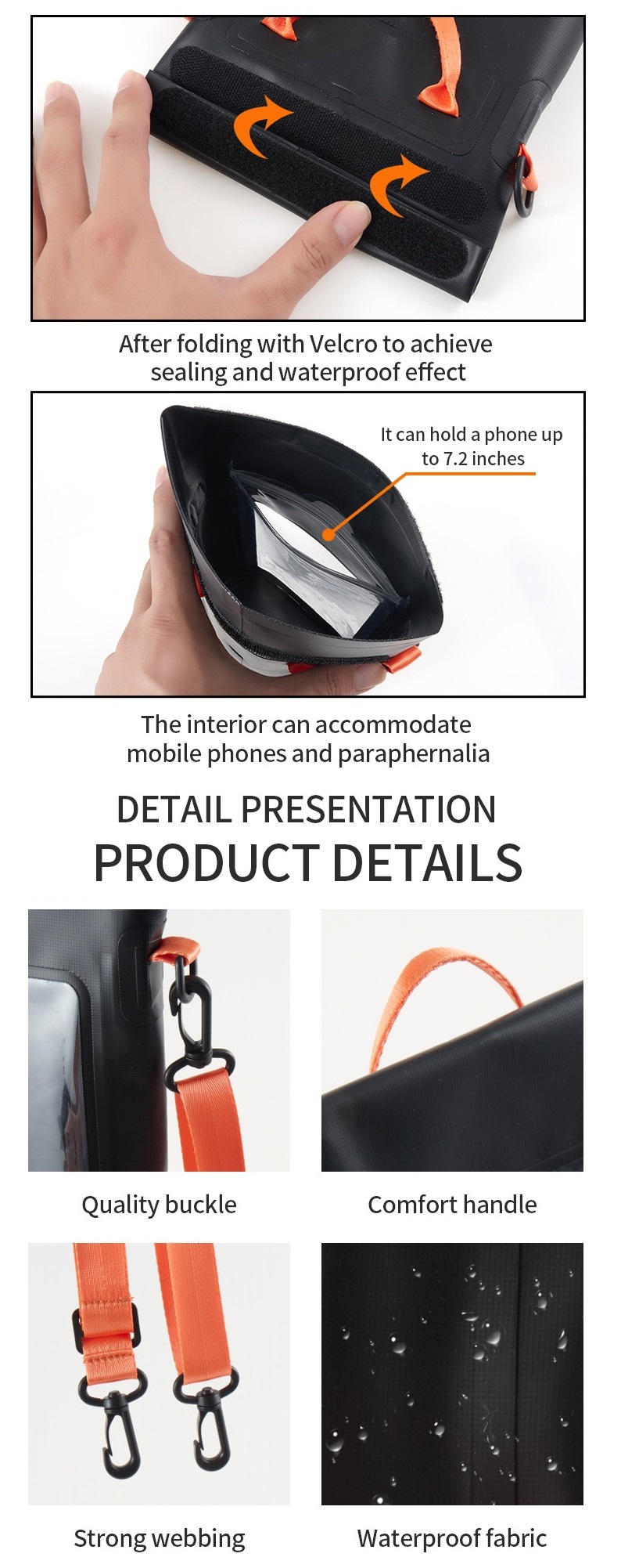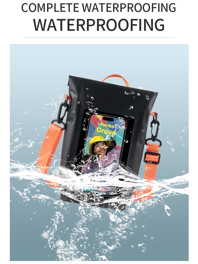 With excellent water-resistant seal performance (IP68 rating), this 100% sealed waterproof bag provides comprehensive protection for your phone and other belongings in a variety of environments; The waterproof roll-top closure ensures a perfect seal and keeps out water, snow, dust, sand, and dirt