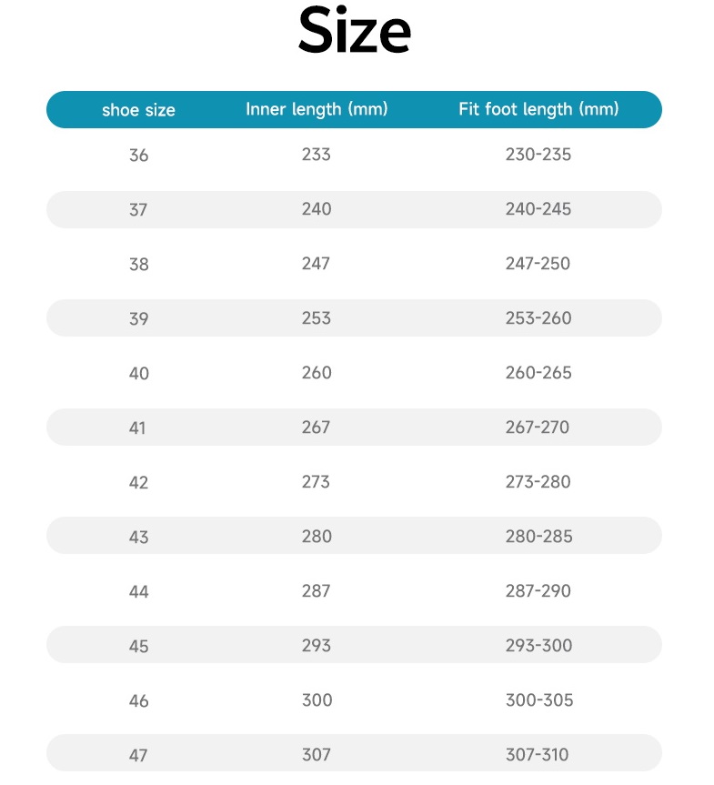 43#(280mm)-44#(287mm)-45#(293mm)-46#(300mm)