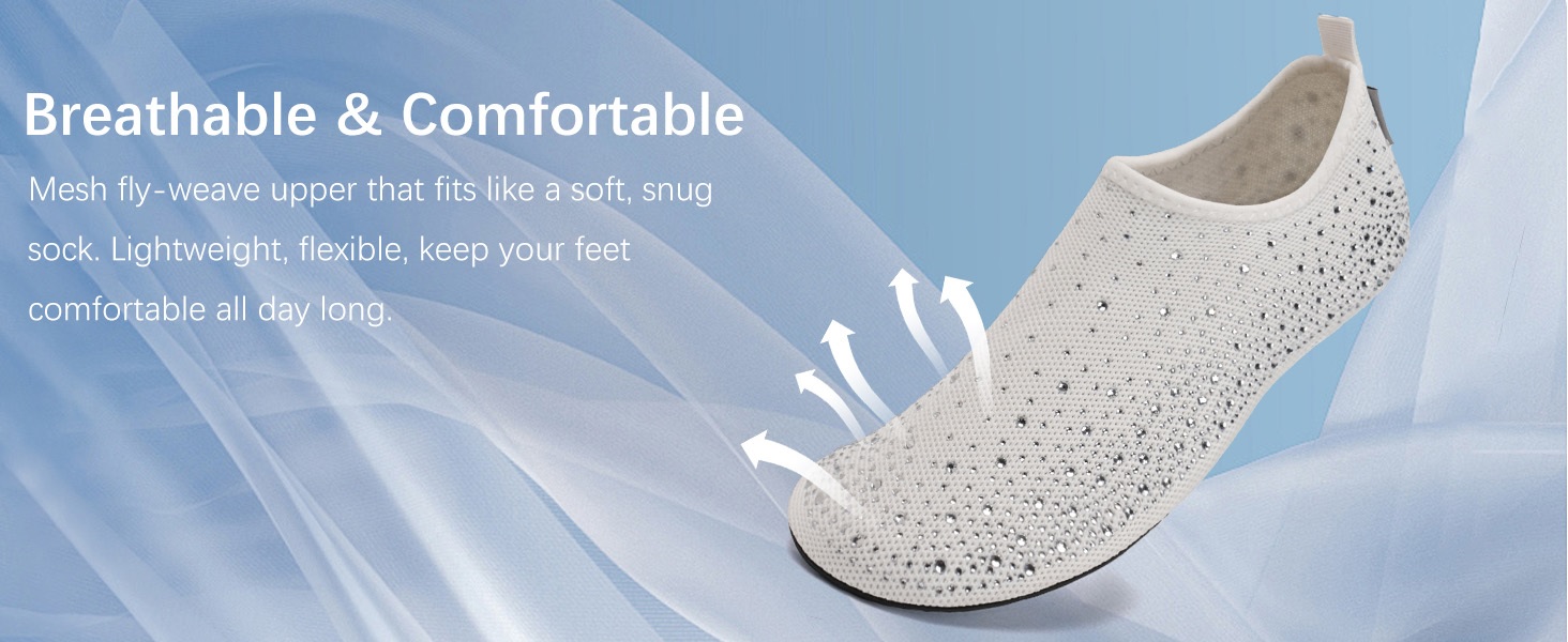 Barefoot Water Shoes Travel House Slippers for Indoor and Outdoor Aqua Socks for Beach Swim Surf Yoga Dancing Camping Must Haves,High stretchy upper with moisture-wicking elastic knitted mesh upper likes a sock, keep your feet comfortable all the day.